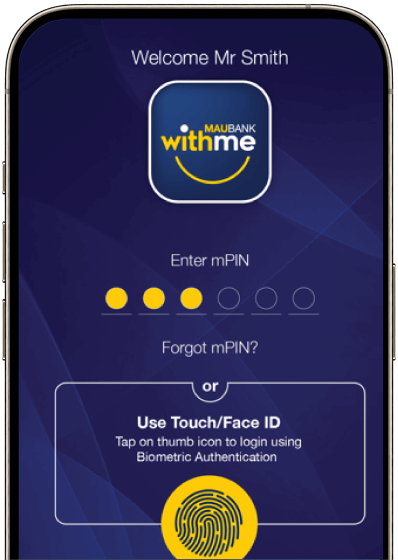 Our mobile app MauBank WithMe allows you to monitor your accounts, make payments, transfer money, recharge your mobile phone and much more with a tap of your finger. Banking becomes so easy with MauBank!